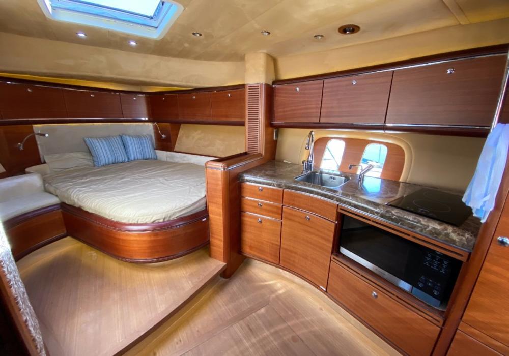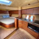 This boat is the definition of artistry and quality workmanship. The design includes 360degree panoramic views that ensure all passengers take in the beautiful surroundings, and the alfresco entertainment area offers a space for everyone to join in the fun. The boat includes a full-beam master bedroom, convertible dinette, fully equipped bathroom, cockpit, retractable sunroof and a cruise speed of 25 knots, just to name a few.